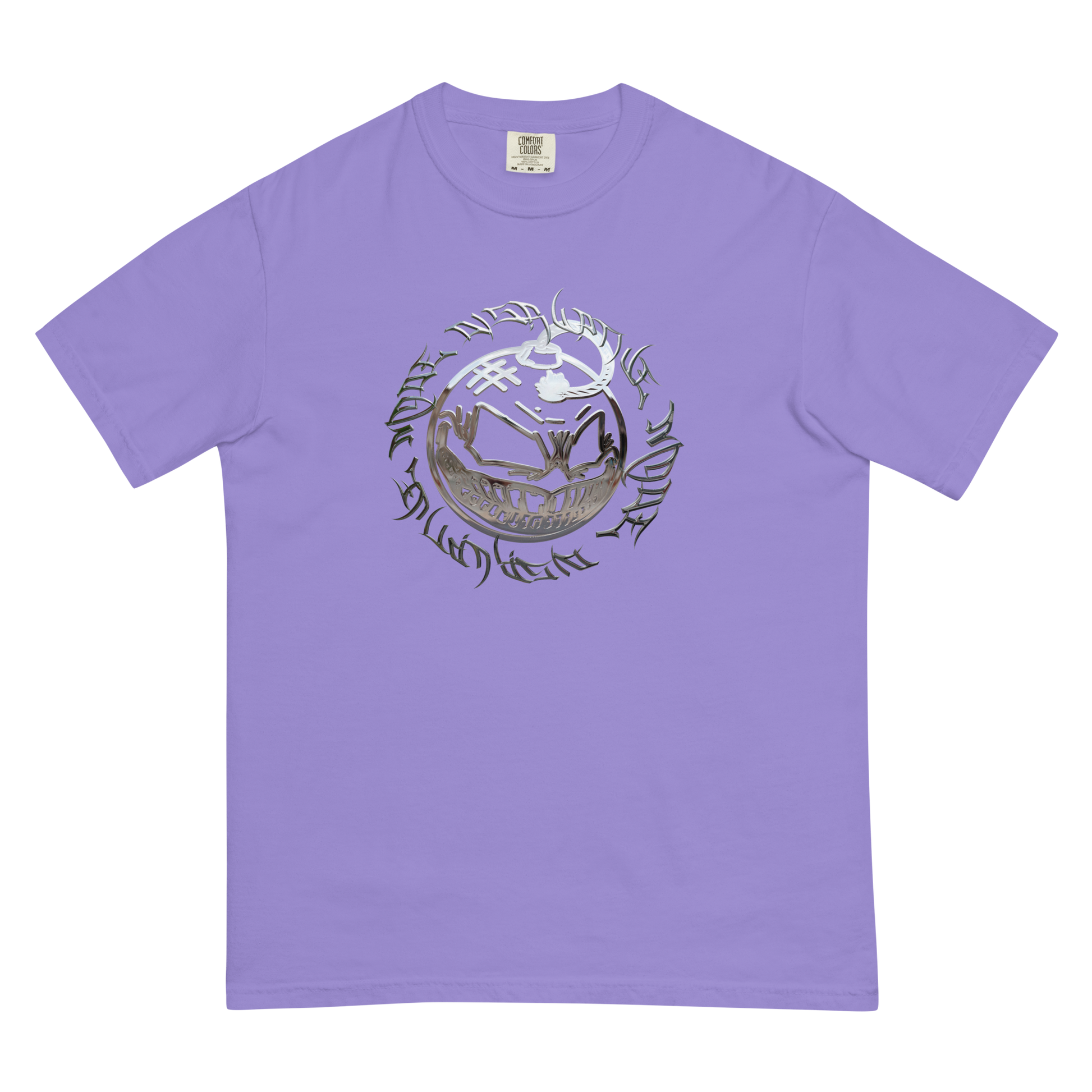 This heavyweight tee is a summer essential. Released during Disruptive Summer '22 intro campaign. The chrome design was created by DevRomani, a talented young designer from Atlanta. Its premium quality means comfort, durability, and a great fit. Wear this tee while going out and feel confident and stylish.